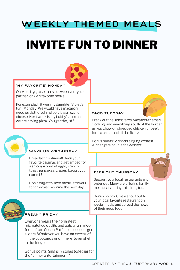 Not all your kids are going to be interested in helping you in the kitchen, which is why we introduced themed daily meals in our home.